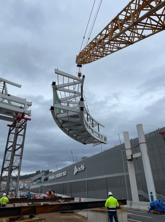 A torre inclúe dous ascensores e está construída en formigón cunha sección transversal en forma de “C”, o que abre vistas da ría cara ao norte. Os dous ascensores permiten desprazamentos máis rápidos e a evacuación de emerxencia entre cabinas. A pel arquitectónica está composta por dous materiais: superficie sólida branca nas zonas opacas e vidro laminado temperado estrutural curvo nas zonas translúcidas, que permiten vistas e iluminación dinámica nocturna do complexo. O resultado é un conxunto arquitectónico funcional que promove a mobilidade sostible á vez que crea un volume estrutural escultórico que se pode percorrer, enriquecendo a experiencia de cruzar a cidade e establecendo unha nova icona recoñecible para a cidade de Vigo e para Galicia.